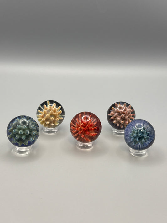 Dive into the world of exquisite handmade glass artistry with our captivating marble collection. Currently featuring air trap marbles, vortex marbles, and sculpted marbles, this collection is a testament to the timeless beauty of glass craftsmanship. Whether you’re a dedicated collector or a first-time admirer, these marbles offer a unique blend of artistry and design that makes each piece a true collector’s item. Start your journey into the fascinating world of glass marbles today and add a touch of brilliance to your collection.